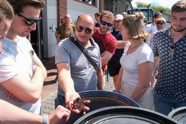 Um die Reisezeit ein bisschen unterhaltsamer zu gestalten, haben die beiden Reiseleiter:innen Alessia Mazzotta und Tobias Meier alias Brämser ein super Reisebingo vorbereitet. Dabei erhielten alle eine mehr oder weniger tolle Aufgabe, welche im Verlauf der vier Tage absolviert werden musste. Ohne Stau am Gotthard erreichten wir unser erstes Ziel am Mittag in La Colombara. Nach dem Mittagessen ging es auf die Reisefarm, wo wir eine spannende Führung durch die alten und neuen Produktionsstätten hatten. Zurück im Car machten wir uns auf zum Hotel, wo wir eindringlich mit „Lassen Sie die altee Leutee schlafen!“ ermahnt wurden. Nach dem Welcome-Drink ging es vor dem Abendessen im Hotel für die meisten in die Stadt, um sich nochmals zu stärken. Das Gleiche ereignete sich, wer hätte es anders gedacht, nach dem Abendessen gleich nochmal.