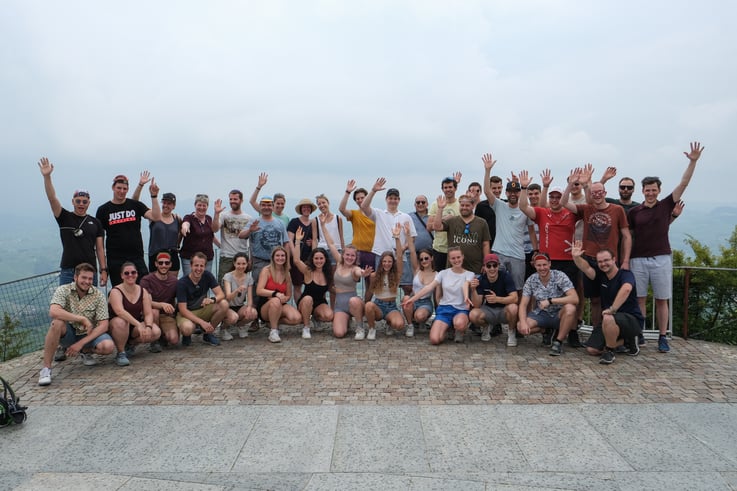 Am nächsten Morgen ging es nach Lugano, wo ein Detective Trail auf uns wartete – zumindest für diejenigen, die nicht schon nach dem zweiten Posten im Apéro hängenblieben. Mit dem Schiff setzten wir nach Morcote über, wo uns eine Weindegustation erwartete. Die 1000 Treppen dorthin waren schweisstreibend, doch der Wein schmeckte danach umso besser. Einige suchten anschliessend den „Abkürzungsweg“ Richtung Melide, der sich als unerwartet langer Umweg entpuppte – immerhin fanden sie unterwegs eine 5-Sterne-Bar mit „günstigem“ Bier. Die anderen badeten nochmals im See und genossen die direkte Route. Zudem folgte ein verdienter Apéro direkt am See. Hier kam die Stimmung so richtig in Fahrt: Neben viel Gelächter sorgte eine grandiose Parodie von „Kliby und Caroline“ sowie spontane Flirt-Tipps aus den eigenen Reihen für beste Unterhaltung.